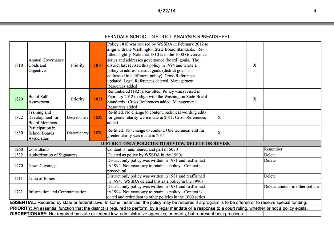 Ms. Quinn, however, informed this writer that the school district’s Code of Ethics was a “gentleman’s agreement.” Now, according to the Ferndale School District website documents, the Code of Ethics policy is no longer in effect. School District personnel said the policy was deleted by action of the school board on April 29, 2014.