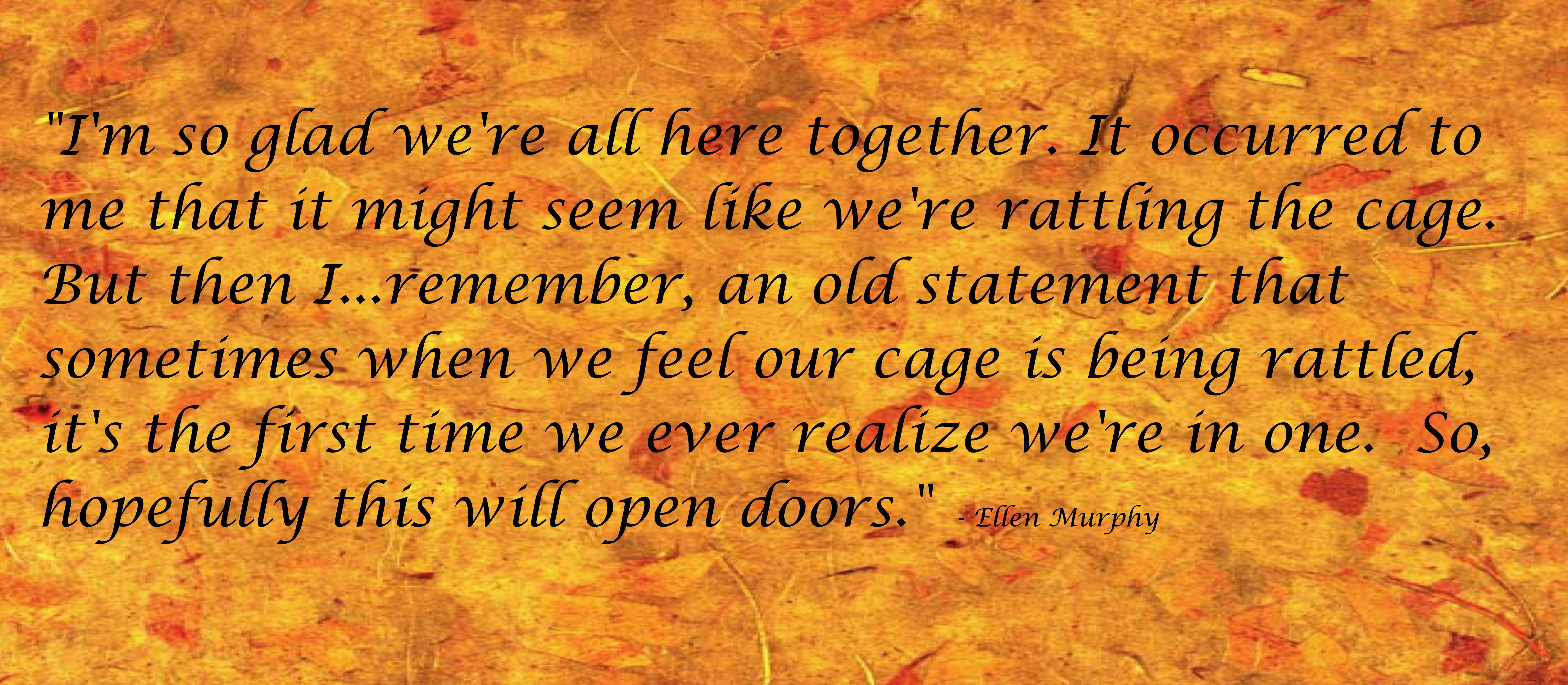 I'm so glad we're hereEllen's talk opening at Rick's officeEllen Murphy's personal story