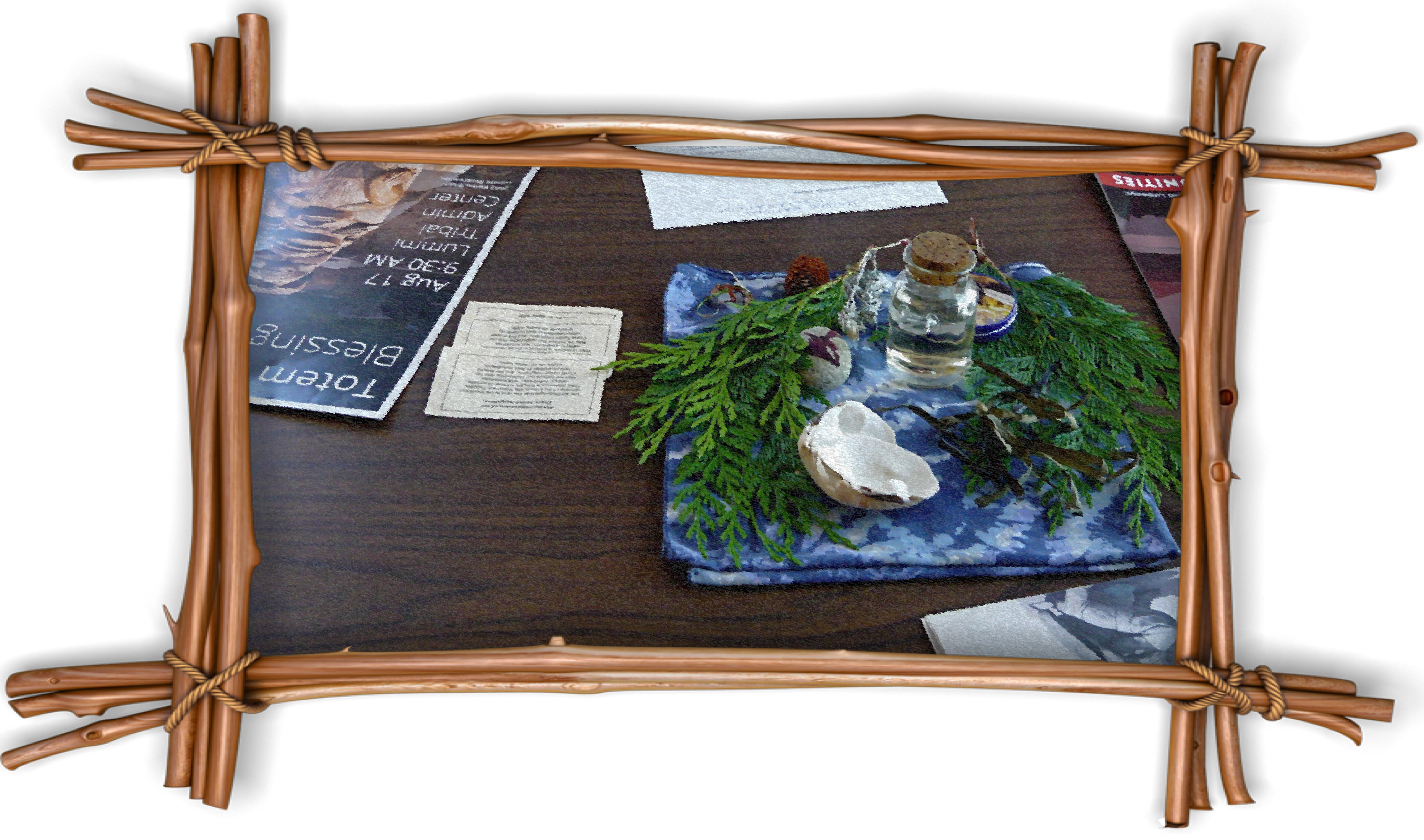 There are positioning voice patterns and reverberations down at the end of that hallway.  When you are done sight-seeing you find Ellen standing and the others seated in a small conference room.  There is still some positioning though.  Ellen is speaking and laying things out on the table.  Yes, these are fine things.  Sacred.  Rock, and shell, eel grass and sea water.  The standing one says their home is Xwe’chi’eXen, Cherry Point.sacred object tableellen and the treaties