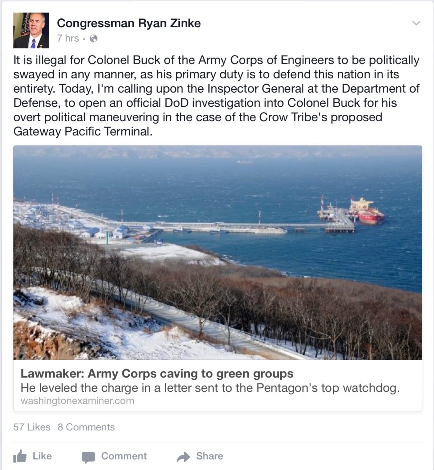 zinke facebook post dod